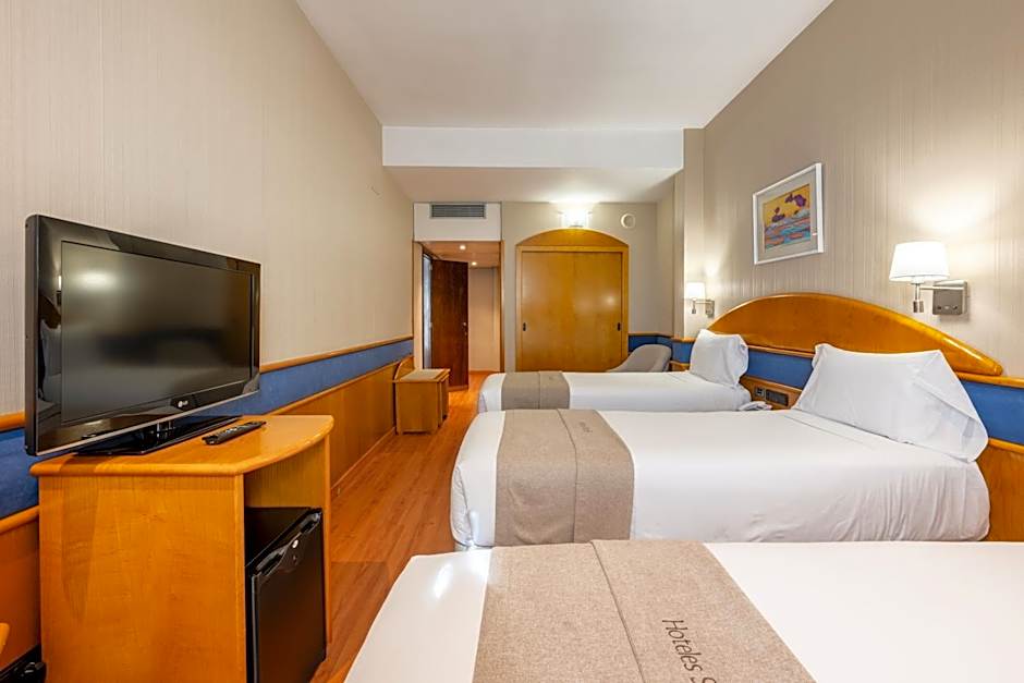 This triple room has 3 single beds. It offers modern décor and wooden floors. It includes flat-screen satellite TV, a safe and a selection of pillows. The marble bathroom comes with a bathrobe and hairdryer.